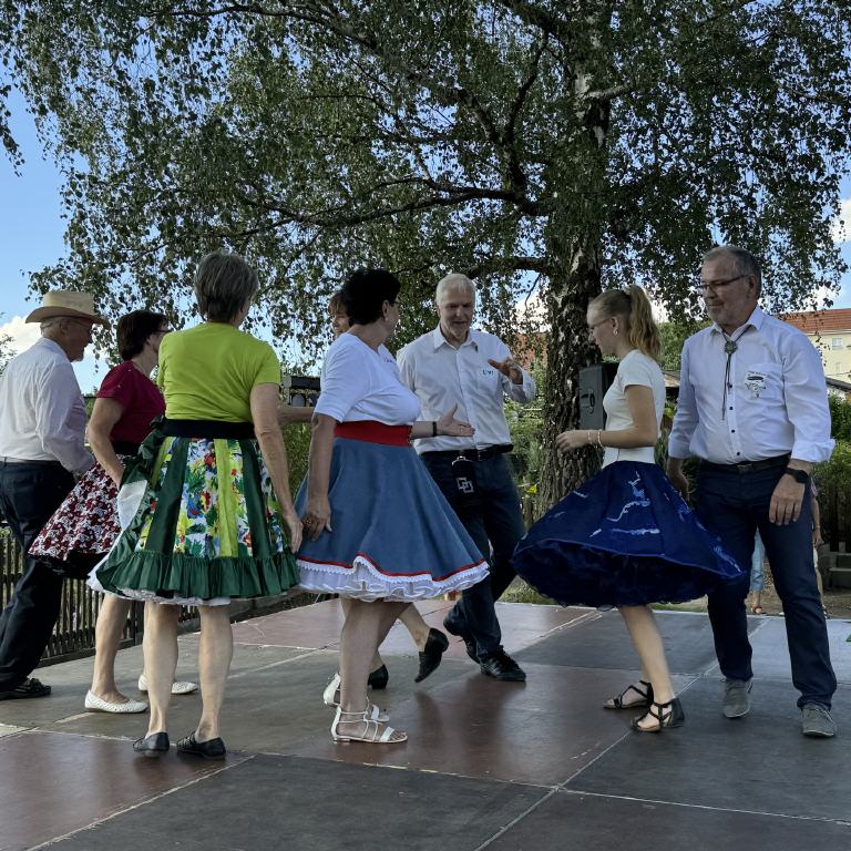 Unsere Caller Stefanie und Christian haben ein interessantes Programm zusammengestellt und uns in den Workshop- Runden manchmal ganz schön verwirrt. Nach dem Tanzen hatten wir am Abend die Gelegenheit für ein gemütliches Beisammensein.