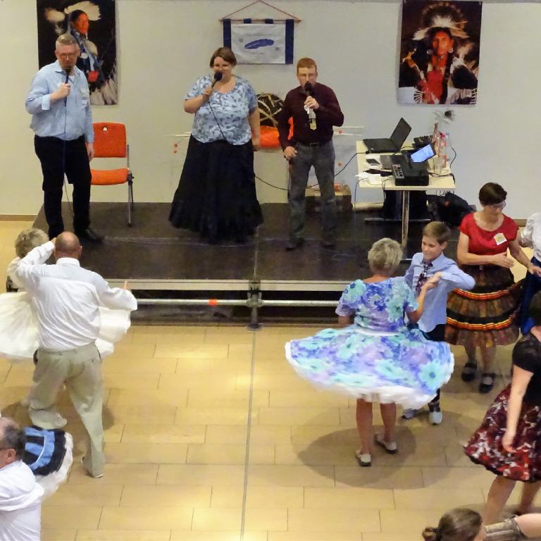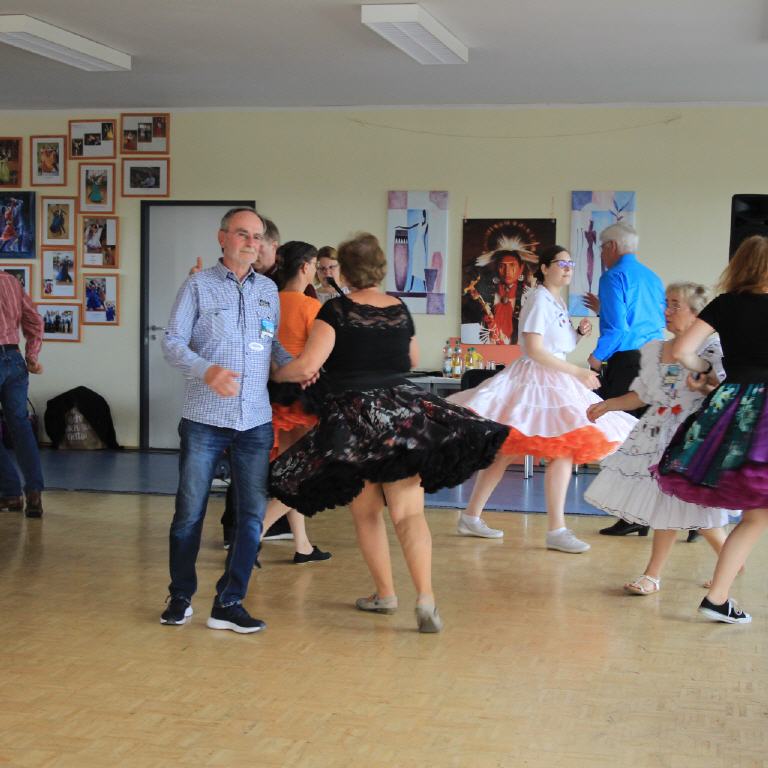 Unsere Caller Stefanie und Christian haben ein interessantes Programm zusammengestellt und uns in den Workshop- Runden manchmal ganz schön verwirrt. Nach dem Tanzen hatten wir am Abend die Gelegenheit für ein gemütliches Beisammensein.
