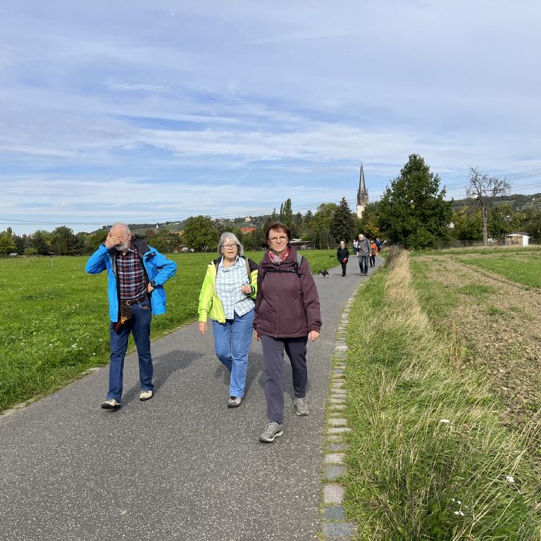 Am 08.10.2022 trafen wir uns an der Kirche in Altkötzschenbroda zu unserer Herbstwanderung. Zunächst wurde die Kirche besichtigt und der Kirchturm erstiegen, von dem wir einen herrlichen Blick über die Elbwiesen und Radebeul hatten. Dann führte uns unser Weg an der Elbe entlang bis nach Altkaditz, wo wir die Kaditzer Emmauskirche und die Kaditzer Linde, den ältesten Baum Dresdens, bewunderten. Im Altkaditzer Wirtshaus konnten wir uns bei schmackhaftem Essen und kühlen Getränken stärken.