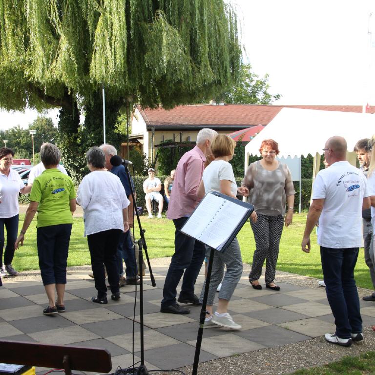 Am 6. Juli 2019 haben wir zu unserem " 3. Little Indians Dance" in das Vereinshaus nach Kreischa bei Dresden eingeladen. Als Caller war Thorsten Ueckermann aus Hamburg unser Gast, der gemeinsam mit unseren Callern Stefanie und Christian für die nötige Stimmung sorgte. Mit Freude konnten wir 39 Gäste aus 7 Clubs begrüßen, die sich auch alle bei uns sehr wohl fühlten und viel Spaß hatten. Zum Glück hielt sich die Temperatur nach vorher heißen Tagen in Grenzen. Schön, dass wir auch den Außenbereich nutzen konnten. Am Nachmittag begeisterte uns das"Tanzzentrum Dresden e.V." mit ihren Darbietungen. Für das leibliche Wohl war nicht nur durch die leckeren Kuchen gesorgt. Die Firma "Tischlein deck dich" bot mit ihrem Catering ein leckeres Abendbrot. Alles in allem ein schöner gelungener Tag. Danke an alle, die zum Gelingen beitrugen.Hier die Fotos